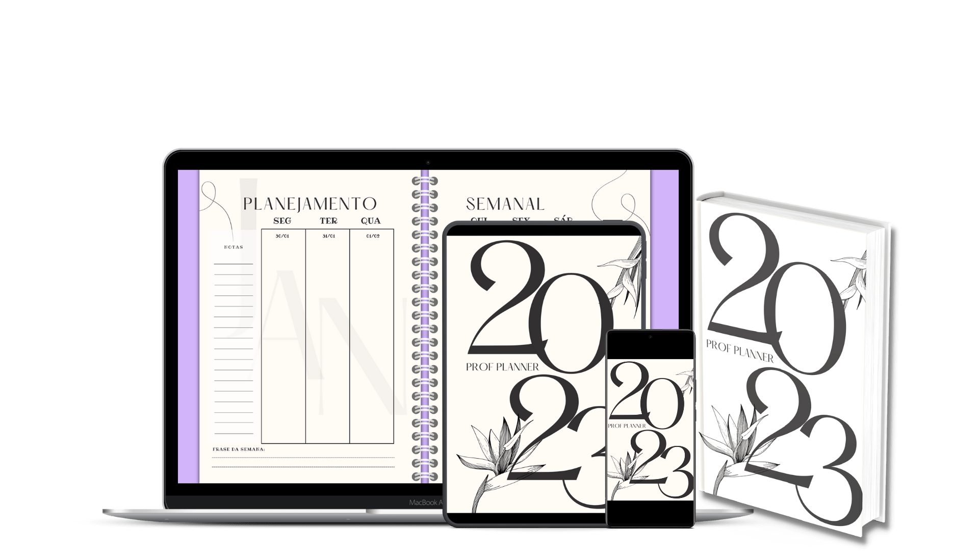 Nosso planner foi pensado e desenvolvido para facilitar a rotina dos professores. Com arquivos que otimizam processos e nos fazem economizar tempo de planejamento e organização da semana, o Prof Planner vai se tornar seu companheiro mais fiel de 2023. Você vai ter TUDO que precisa na palma da sua mão!